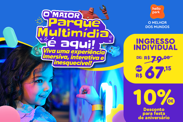 Conhecido como o maior parque multimídia, o Hello Park convida crianças e adultos a mergulharem em uma experiência imersiva, interativa e inesquecível, onde tecnologia, movimento e diversão se encontram para criar memórias únicas.