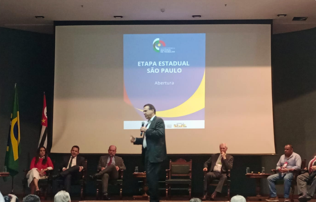 Representando o presidente do SinSaúdeSP, Jefferson Caproni, o vice-presidente Reinaldo Andrade participou, em São Paulo, da Etapa Estadual da 2ª Conferência Nacional do Trabalho, que reuniu centrais sindicais, entidades patronais, organizações da sociedade civil e instituições acadêmicas.